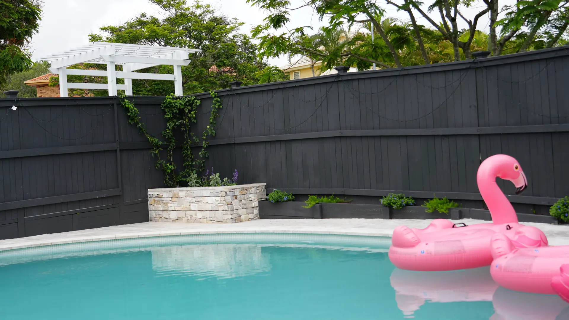 This carefully crafted landscape has rejuvenated a suburban front and pool area, turning it into an inviting, family-friendly haven with remarkable street appeal.